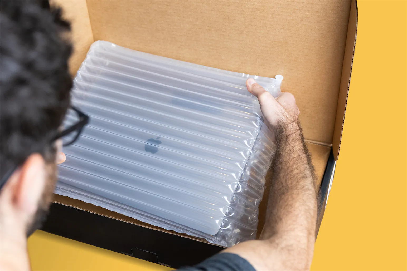 Our boxes are recyclable and padded for safety. We include enough room for a laptop and accessories, plus packing materials, instructions, and a prepaid return label.